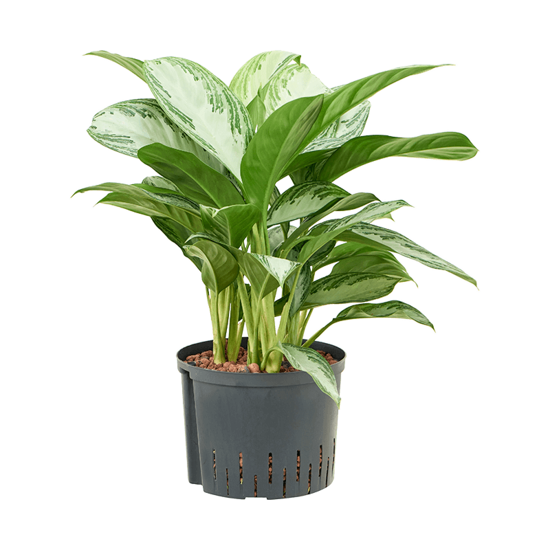 Geef een Aglaonema op hydrocultuur eenmaal per maand water tot het middelste streepje op de meegeleverde watermeter, gemarkeerd als OPT, wat de optimale waterstand aangeeft. Laat tussen de gietbeurten de watermeter zakken tot het MIN-niveau. (toelichting)