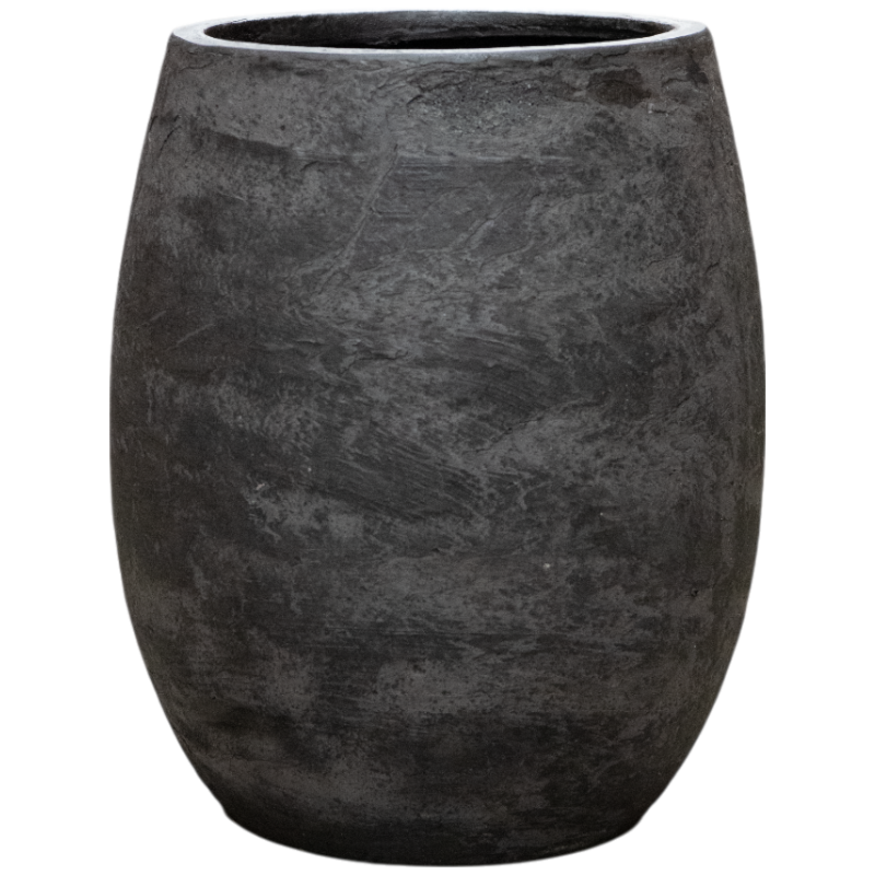 De Baq Algar is een stijlvolle, antraciet plantenbak met een unieke, ovalen vorm. Met afmetingen van 36 x 30 cm voegt hij een moderne touch toe aan je interieur of tuin.