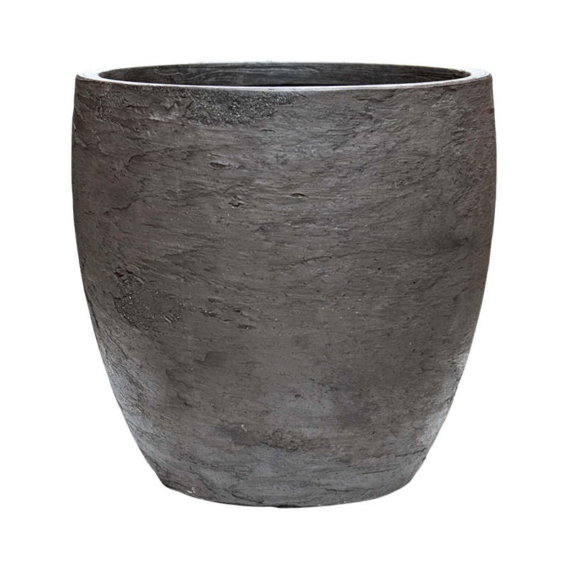 De Baq Algar is een ruime plantenbak met een moderne, organische vorm met een diameter van 34 cm. In een stijlvolle donkergrijze kleur, perfect voor kantoorplanten en buitenplanten.