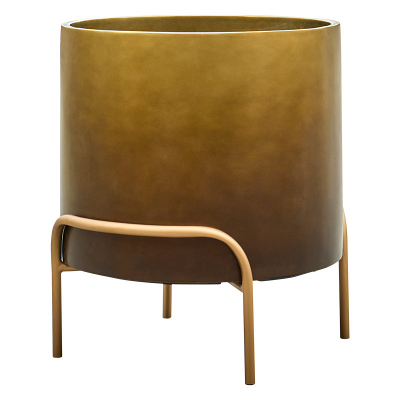 Stijlvolle, honingkleur plantenbak met strakke lijnen.