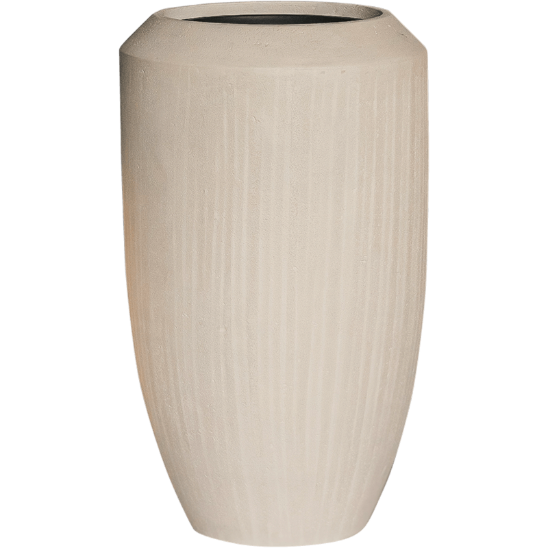 Elegante, lichte plantenbak in een mooie vorm. Een aanvulling voor op kantoor.