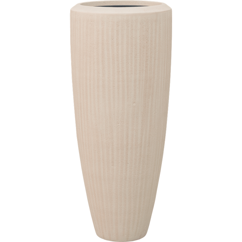 De Baq Polystone Plain is een stijlvolle, lichtgekleurde plantenbak met een elegante vorm en subtiele ribbelstructuur. De plantenvaas is met zijn afmeting van 90 x 37 cm perfect voor zowel binnen als buiten.