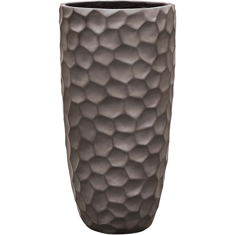 De Tortuga hoge vaas in chocoladebruin is een stijlvolle blikvanger met een elegante honinggraatstructuur. Het slanke design maakt deze vaas perfect voor kleine kantoorplanten of decoratieve takken. Gemaakt van lichtgewicht en sterk fiberclay, maar niet waterdicht – gebruik daarom een inzethoes binnenshuis. Een tijdloze keuze voor een warm en sfeervol interieur. UV en vorstbestendig maakt deze bloempot geschikt voor buiten.
