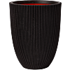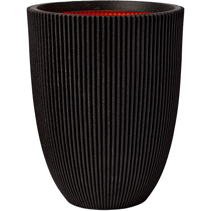 Strakke, zwarte plantenbak met ribbelstructuur. De lichtgewicht plantenbak is geschikt voor de werkplek.