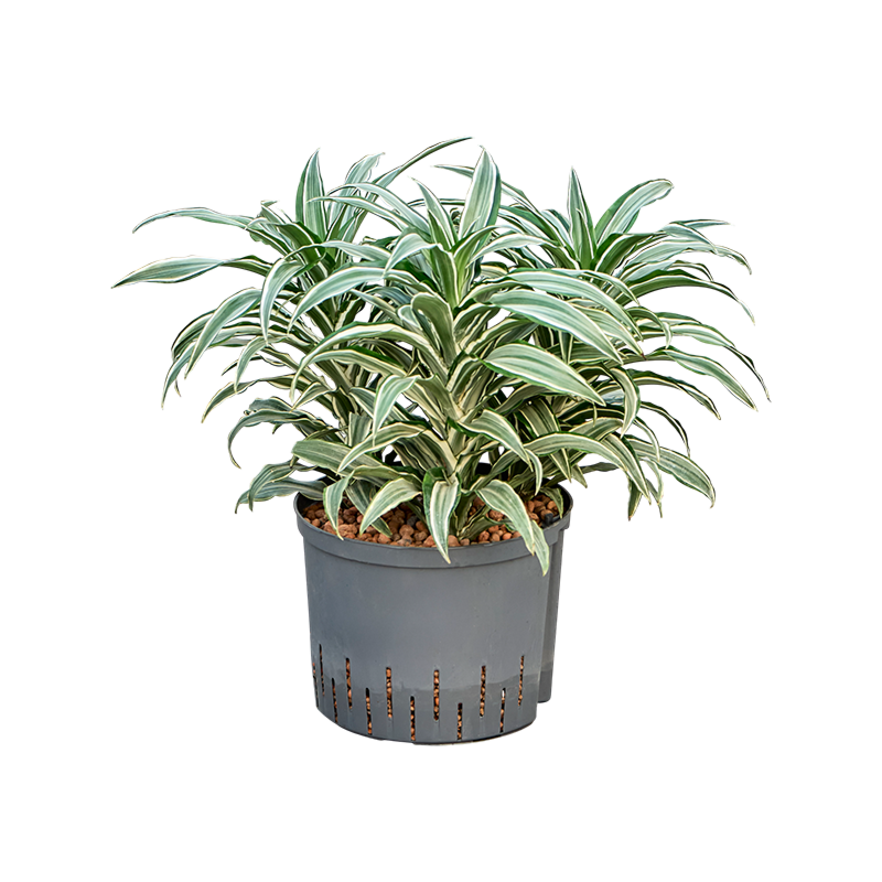 Geef een Dracaena op hydrocultuur eenmaal per maand water tot het middelste streepje op de meegeleverde watermeter, gemarkeerd als OPT, wat de optimale waterstand aangeeft. Laat tussen de gietbeurten de watermeter zakken tot het MIN-niveau. (toelichting)