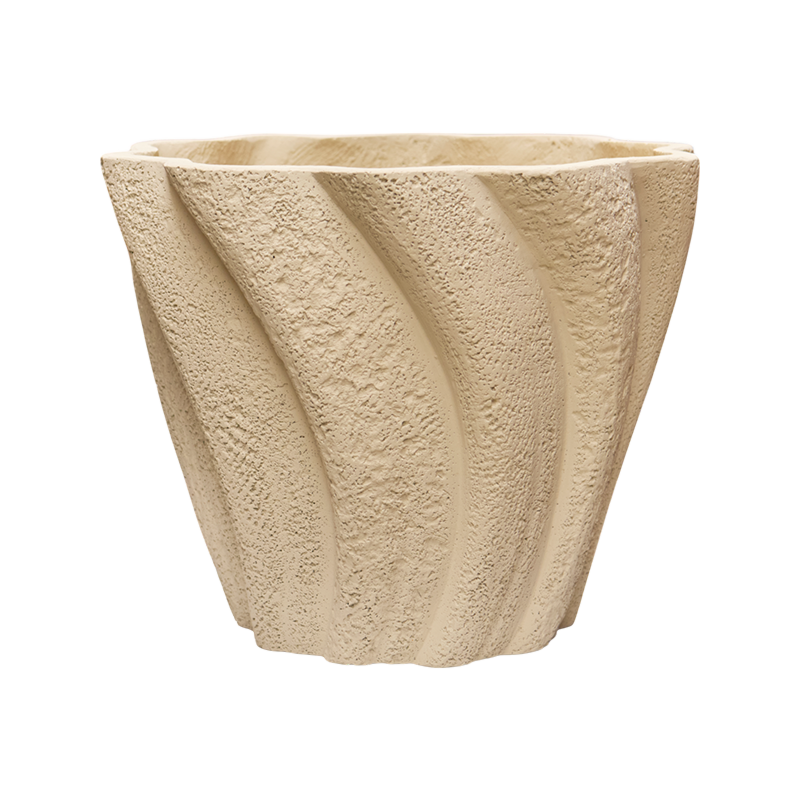 De Drift plantenbak heeft een unieke, golvende vorm met een textuur die doet denken aan natuurlijke elementen. In een warme beige tint past hij perfect in elke buiten- of binnensetting.