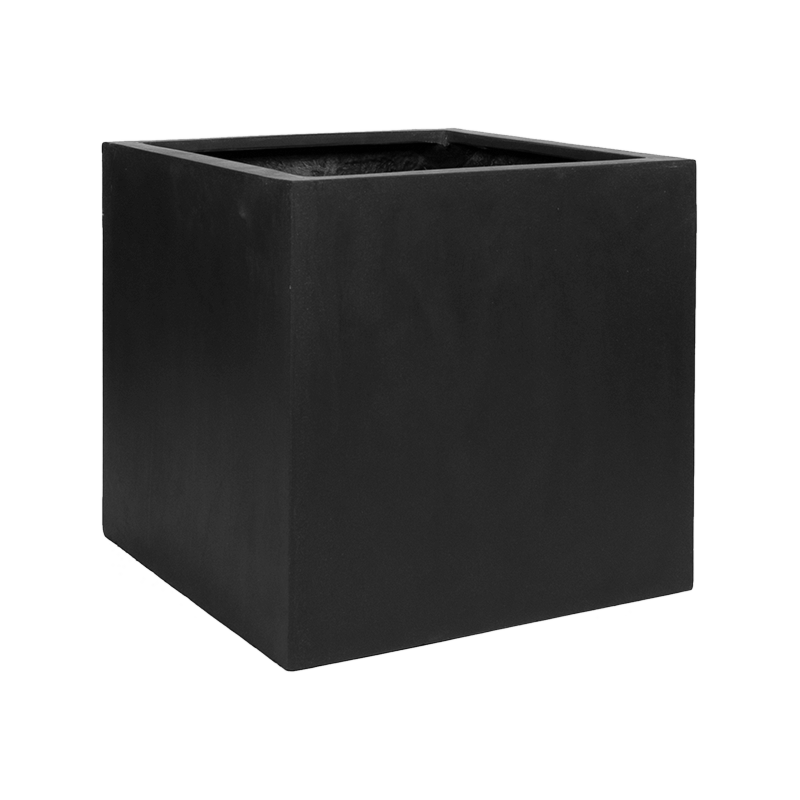 Deze moderne plantenbak van Fiberstone heeft een strak, vierkant ontwerp en is uitgevoerd in een diep zwarte kleur. Perfect voor elke binnen en buitenruimte.