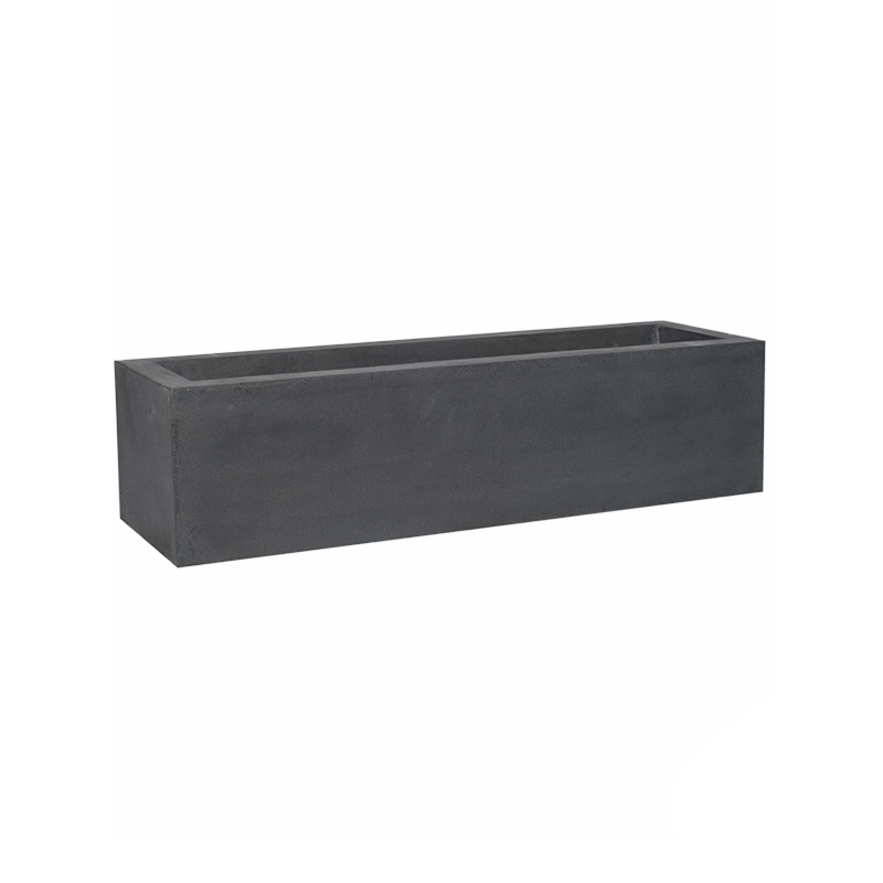 Deze moderne plantenbak van fiberstone heeft een strak, rechthoekig ontwerp en is uitgevoerd in een stijlvolle, donkere kleur. Perfect voor het toevoegen van een vleugje groen op de werkplek.