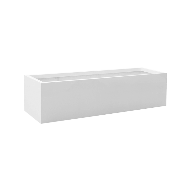 Deze witte Fiberstone plantenbak heeft een strakke, rechthoekige vorm en geeft elke ruimte een moderne uitstraling. Deze 200 cm lange bloempot is hij perfect voor binnen of buiten.