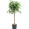 Slanke, groene bladeren op een stevige stam. De Ficus op stam voor kantoor.