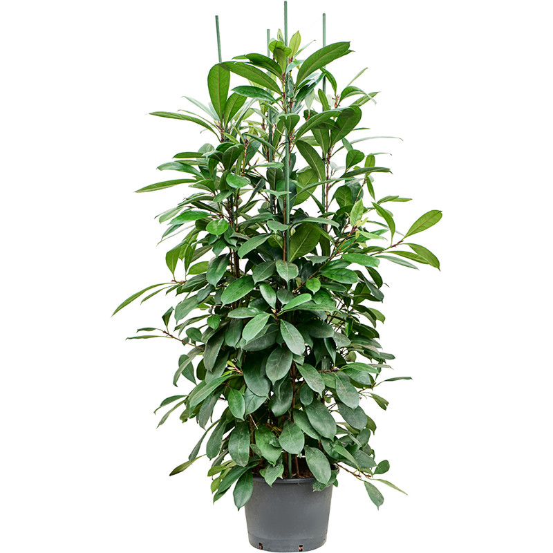 Groene, hydrocultuur Ficus cyathistipula met glanzende bladeren.