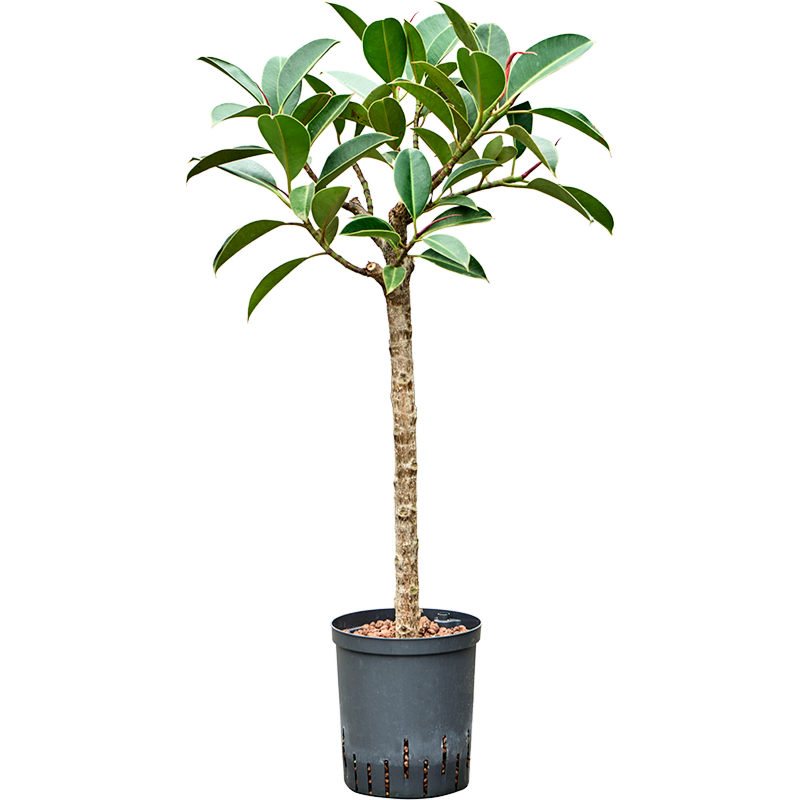De Ficus elastica Melany op hydrocultuur op stam. Het boompje voor kantoor of de werkplek.