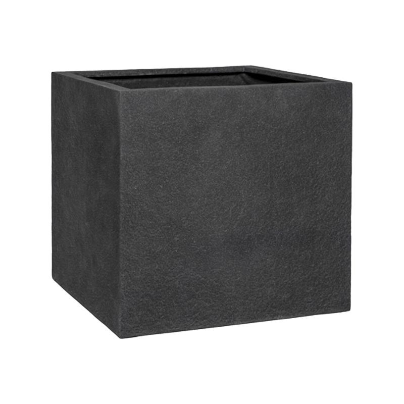 Deze prachtige granieten plantenbak heeft een strakke, vierkante vorm en een elegante, matte zwarte kleur. Perfect voor een grote kantoorplant of tuinplant.