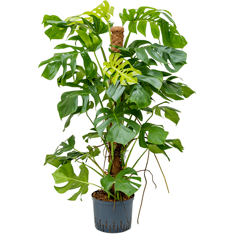 Geef een Monstera op hydrocultuur eenmaal per maand water tot het middelste streepje op de meegeleverde watermeter, gemarkeerd als OPT, wat de optimale waterstand aangeeft. Laat tussen de gietbeurten de watermeter zakken tot het MIN-niveau. (toelichting)