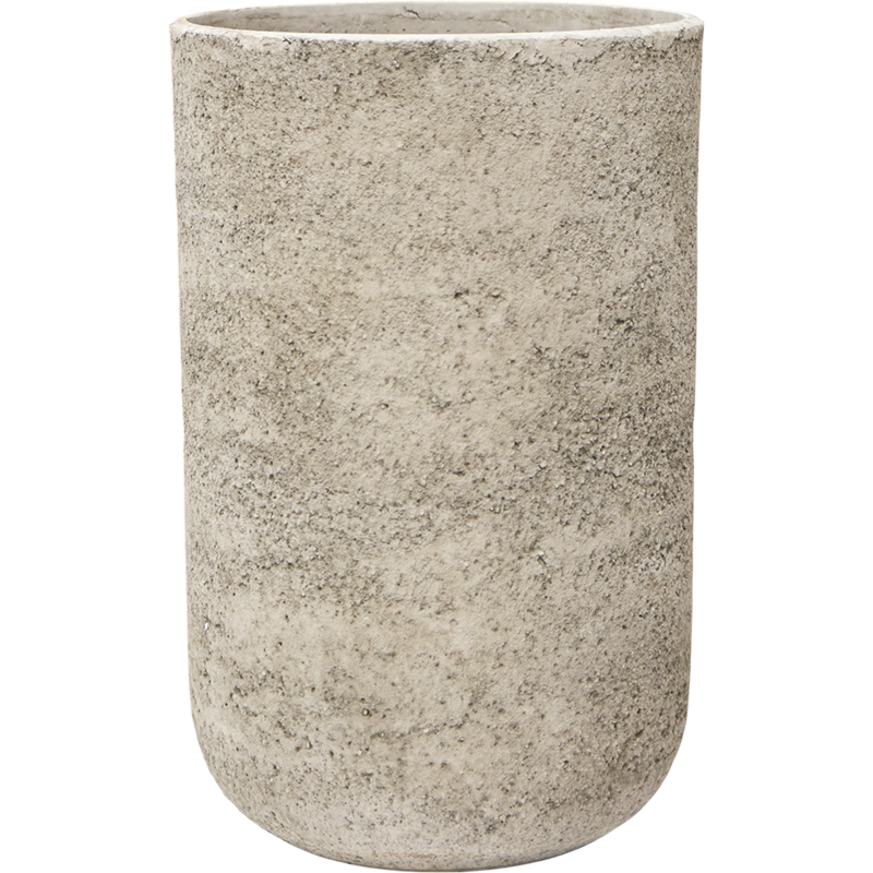 De Mont Blanc plantenbak heeft een moderne, cilindervormige uitstraling en is gemaakt van een unieke, ruwe betonlook. Met zijn lichtgrijze kleur voegt hij een stijlvolle touch toe aan elke kantoorplant.