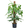Lange vioolvormige bladeren in een fris donkergroene kleur,, klimmend rond een mosstok. Strakke kantoorplant, makkelijk te onderhouden kamerplant. Interieurbeplanting op hydrocultuur.