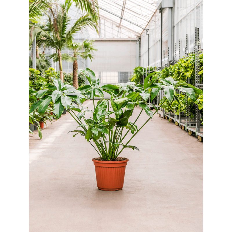 Mooie groene kantoorplant met grote, glanzende bladeren.