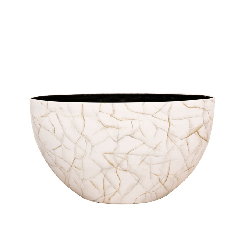 De Niene bloempot combineert stijl en functionaliteit in één elegante oplossing. Deze ovale plantenbak is vervaardigd uit een sterke, lichtgewicht mix van gerecycled plastic, wat niet alleen bijdraagt aan duurzaamheid, maar ook zorgt voor een lange levensduur. Met de wit marmerenb afwerking een subtiele gouden touch maakt deze pot tot een luxe toevoeging aan elke ruimte, van moderne kantoren tot chique hotellobby’s. Dankzij het ingebouwde drainagesysteem met waterreservoir blijven planten gezond en goed gehydrateerd. Overtollig water kan eenvoudig worden afgevoerd door de verwijderbare plug, waardoor je optimale controle hebt over de bewatering.