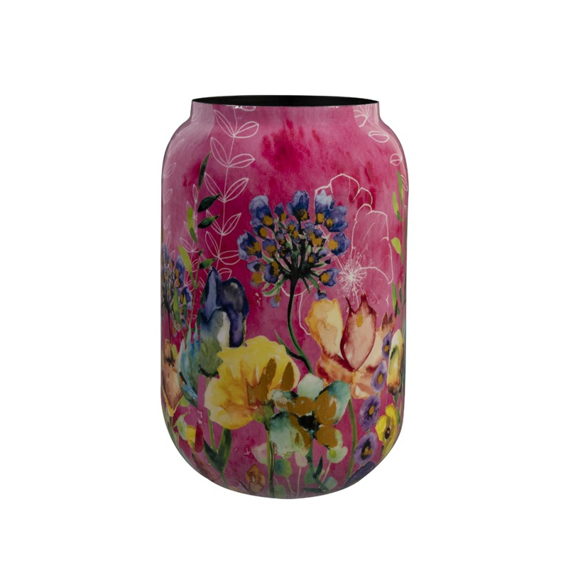 Breng kleur en energie in je interieur met deze hoge vaas in het levendige Fiesta Fuchsia design van Lammie. De fuchsiakleur straalt optimisme en creativiteit uit, terwijl het uitbundige bloemenpatroon elke ruimte een vrolijke touch geeft. Perfect om je huis of kantoor extra flair te geven.