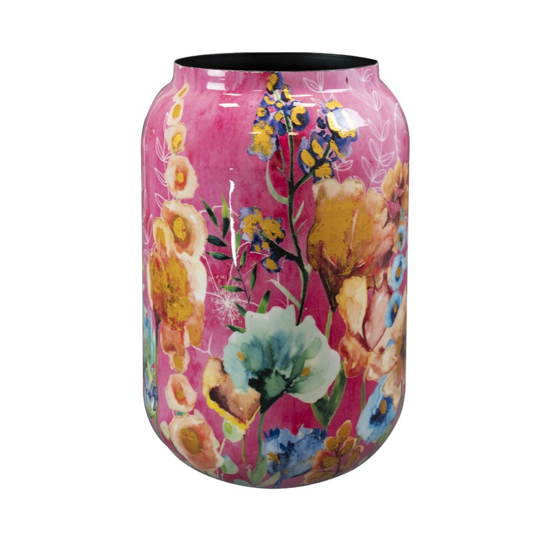 Deze hoge vaas met het sprankelende Fiesta Fuchsia design brengt kleur en energie in elke kantoorruimte. De levendige fuchsiakleur vormt de basis, aangevuld met een uitbundig bloemenpatroon dat zorgt voor een vrolijke en optimistische uitstraling. Het temperamentvolle ontwerp is een echte blikvanger en voegt een speels accent toe aan zowel je huis als kantoor.