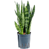 Rechtopstaande, donkergroene Sansevieria met karakteristieke strepen op hydrocultuur.