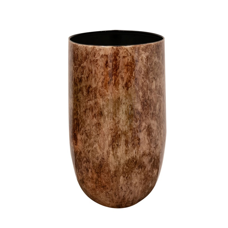 Breng een vleugje woestijnsfeer in huis met Cilia, een stijlvolle en lichtgewicht bloempot van metaal. De unieke woestijnachtige print, in warme bruintinten en een subtiele gouden gloed, straalt rust en elegantie uit. Afgewerkt met een glanzende epoxylaag is Cilia een echte blikvanger voor binnengebruik. Combineer haar met een waterdichte inzethoes voor optimaal gebruiksgemak.
